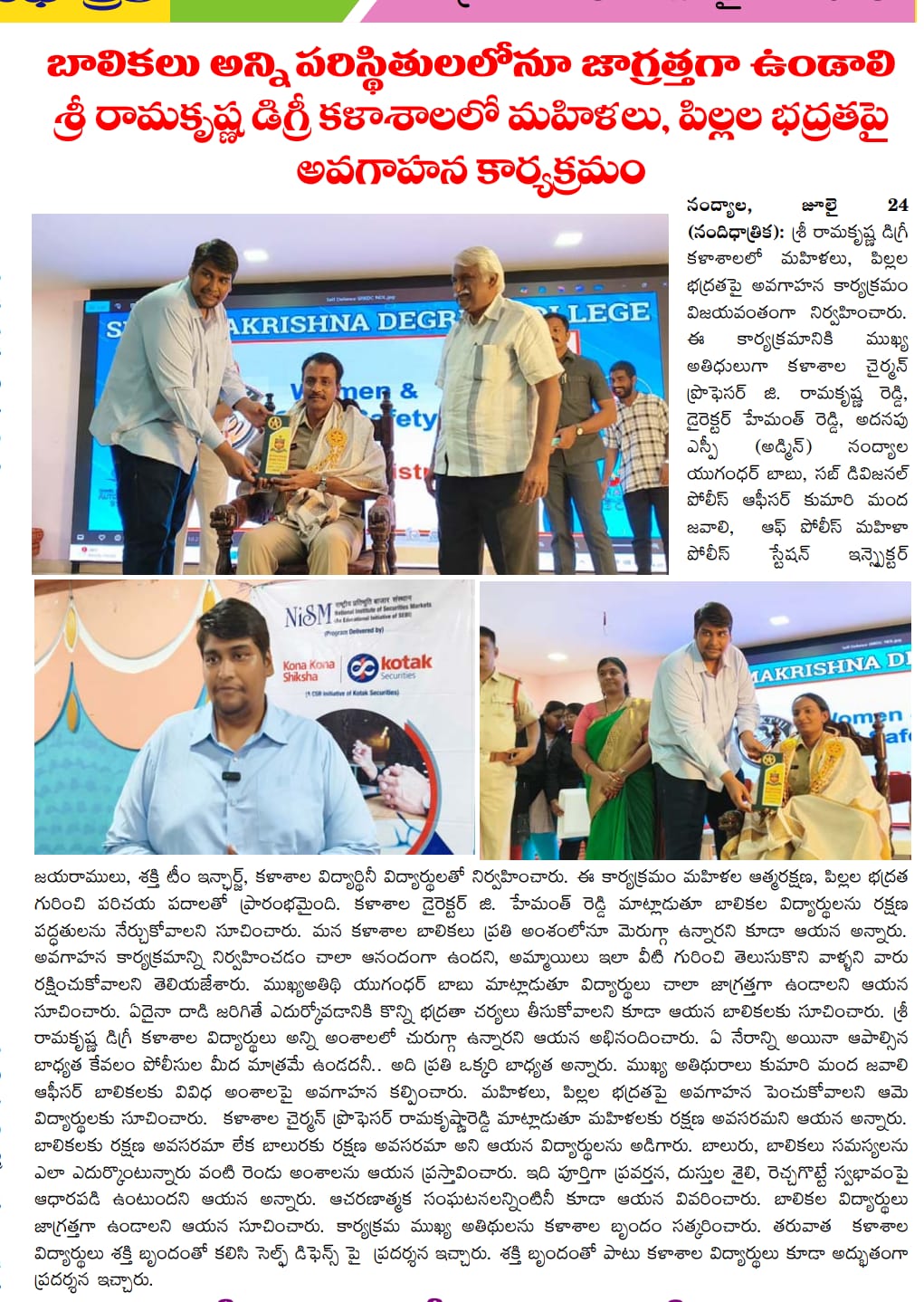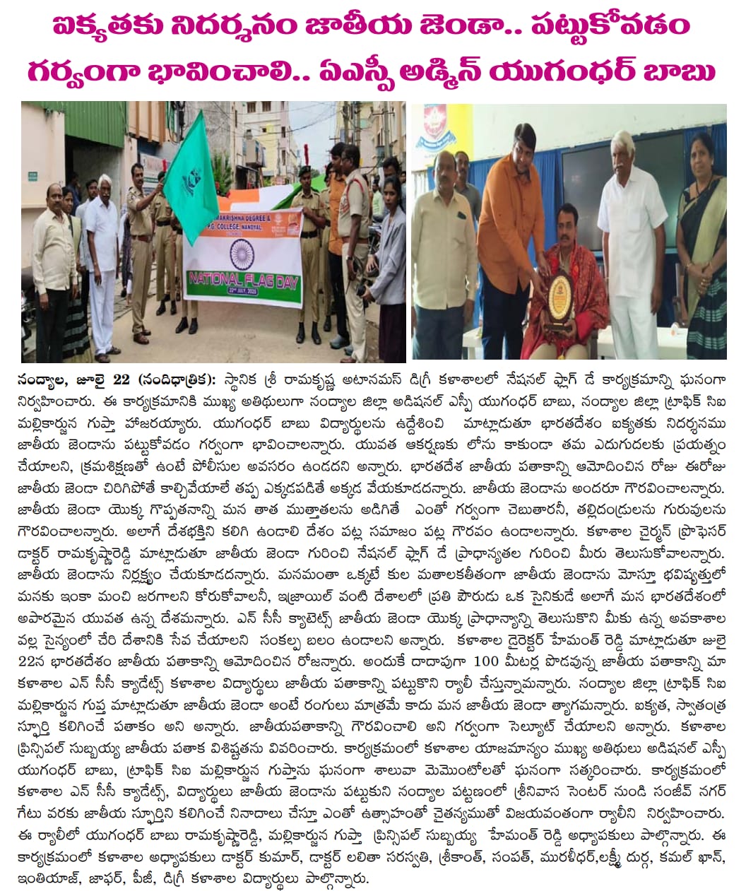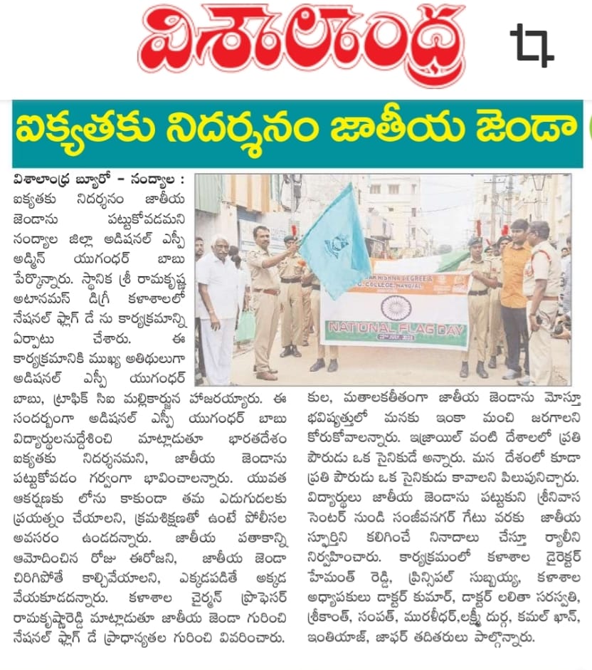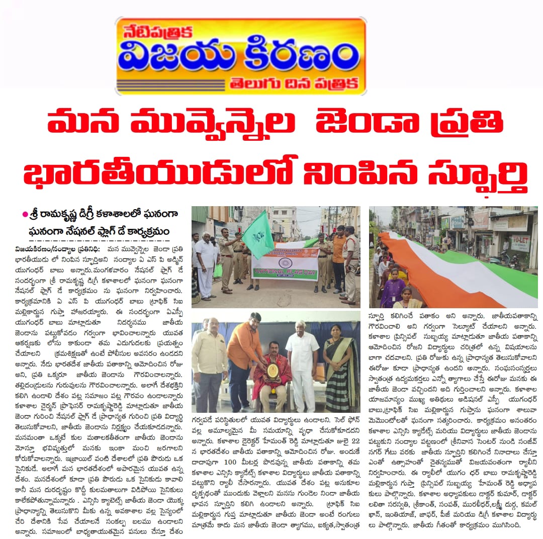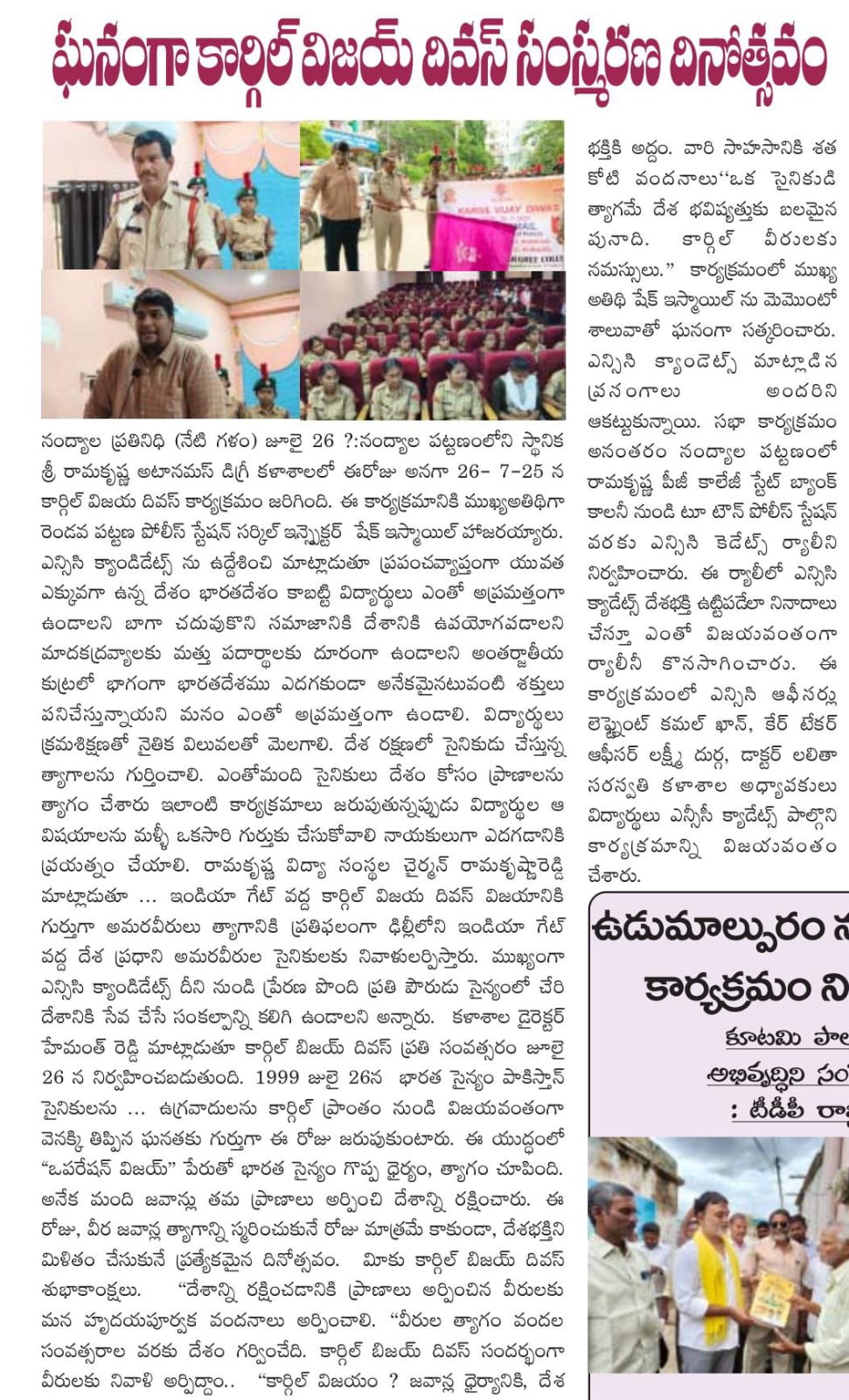 A mega free medical camp was organized under the joint auspices of Sri Ramakrishna Degree College, Nandyal, and Swami Netralayam, for the benefit of the residents of Revanoor, Uppalapadu, and Kalugotla villages in Koyalakuntla Mandal. The camp was conducted at the Sri Kashireddy Nayana Ashram in Kalugotla village.