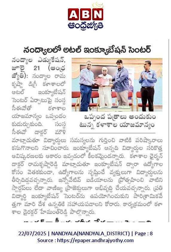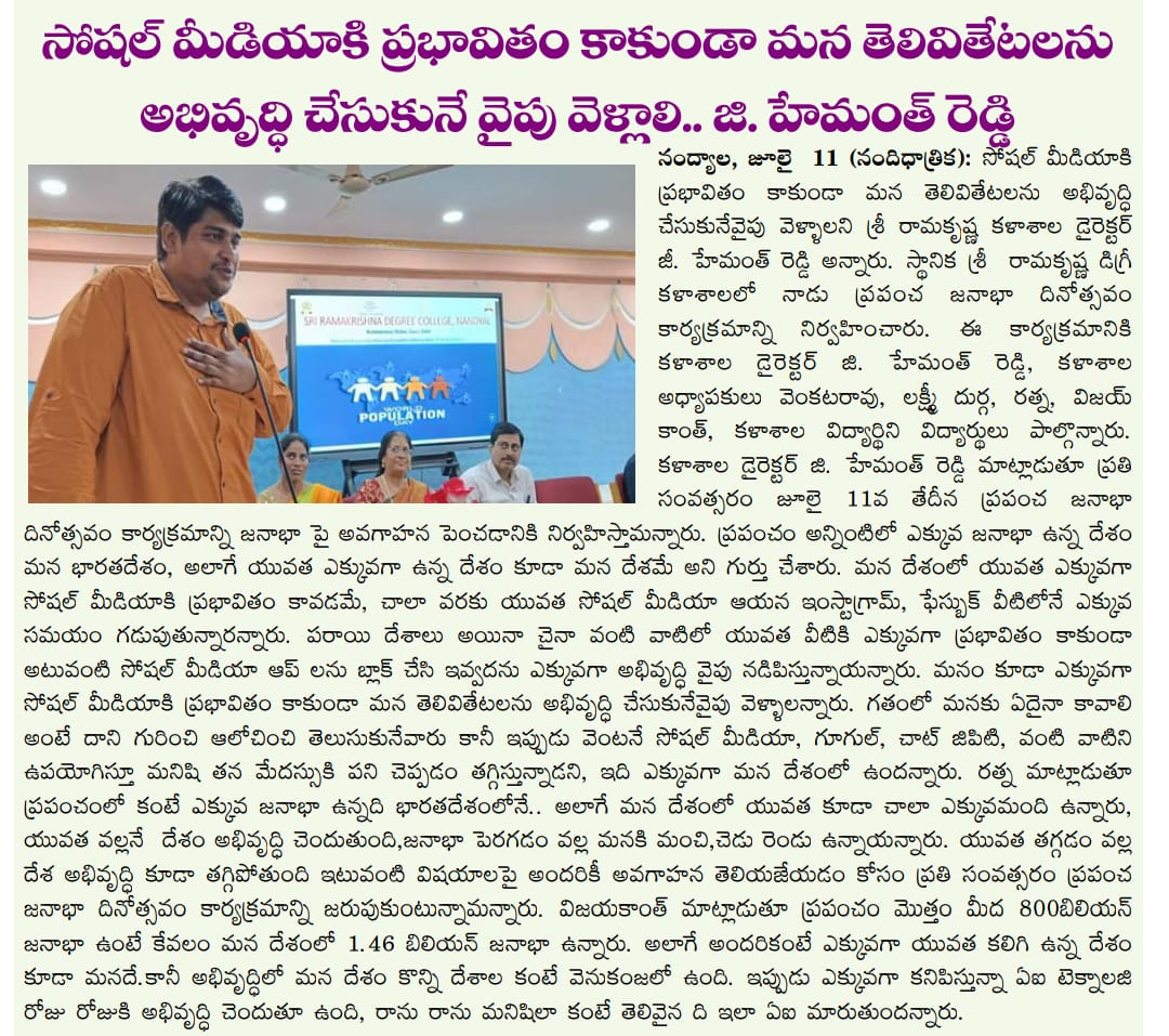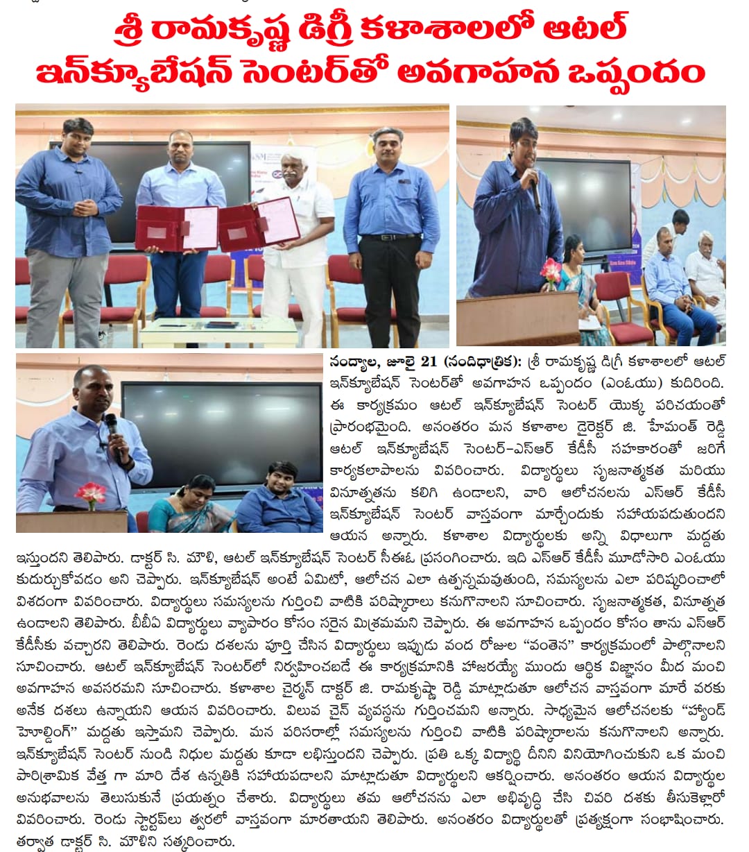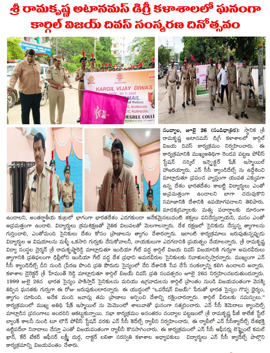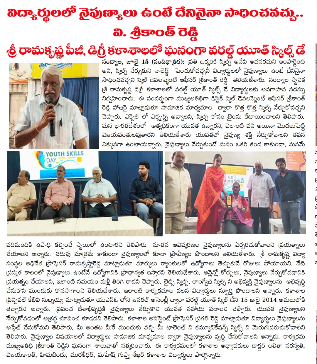 A mega free medical camp was organized under the joint auspices of Sri Ramakrishna Degree College, Nandyal, and Swami Netralayam, for the benefit of the residents of Revanoor, Uppalapadu, and Kalugotla villages in Koyalakuntla Mandal. The camp was conducted at the Sri Kashireddy Nayana Ashram in Kalugotla village.