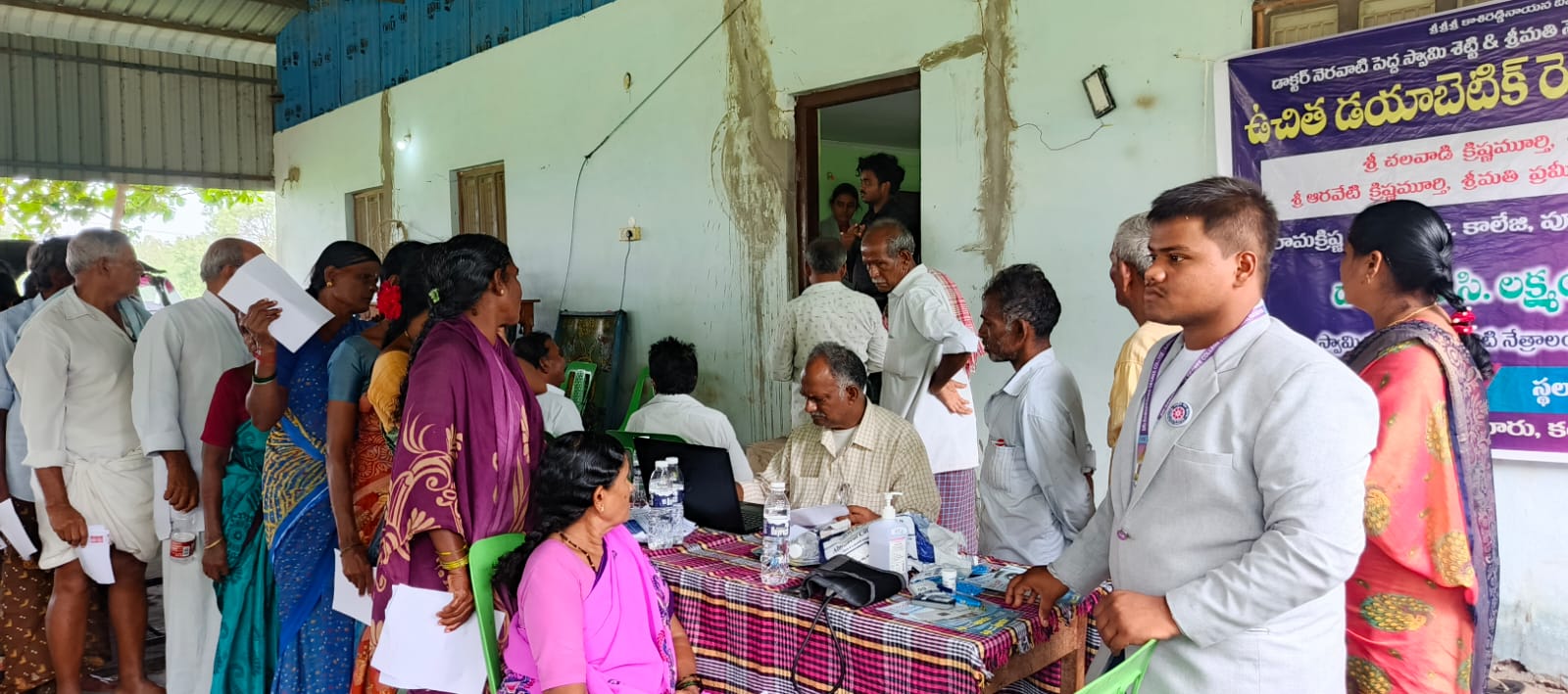 Sri Ramakrishna Reddy stated that he not only accepted the idea of organizing this service camp but also came in person with his staff to provide free diabetes and blood pressure check-ups for the people of Kalugotla, Revanoor, and Uppaluru through the doctors of Swami Netralayam. He extended his gratitude to Dr. Lakshmaiah for his generous service. He also emphasized that eye check-ups were conducted for diabetic patients, and necessary surgeries would be provided free of cost. He advised everyone to be patient and take proper precautions for eye health through timely examinations. Dr. N. Sri Lakshmaiah explained that this service initiative is being carried out with the blessings of Dr. Neravati Pedda Swami Shetty and Smt. Neravati Subhadra Devi, in collaboration with Sri Ramakrishna Educational Institutions. He urged everyone to take advantage of the opportunity. He highlighted that diabetic patients often experience gradual nerve damage in the eyes without any prior symptoms, which may lead to vision loss if not treated. Hence, he stressed the importance of regular eye examinations and assured that necessary surgeries would also be conducted during the camp.